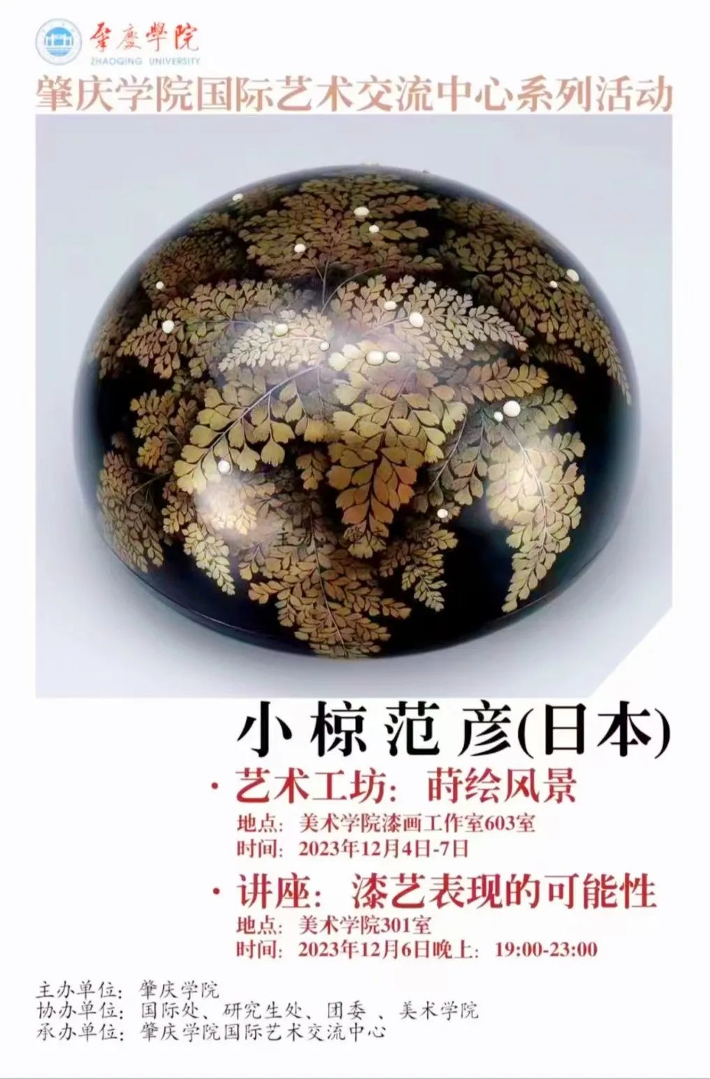 2023年12月4日-7日,小椋范彦(日本东京艺术大学美术学部工艺科漆艺教授)应beats365官方网站邀请为beats365官方网站2023级艺术设计研究生进行工坊授课。