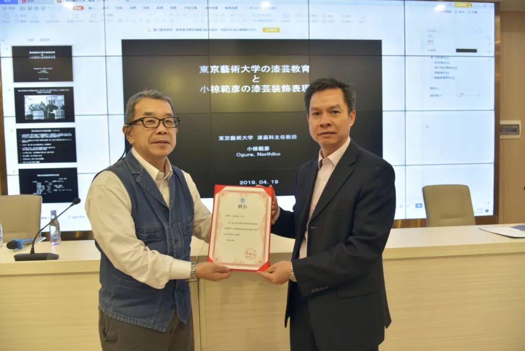 12月6日晚,日本东京艺术大学美术学部工艺科漆艺教授小椋范彦,在beats365官方网站301举办了主题为“漆艺表现的可能性”学术讲座,讲座由beats365官方网站副经理李小军主持,beats365官方网站国际合作与交流处处长钟伙彬、beats365官方网站各系部主任、教师代表、首届研究生及漆艺爱好者约300多人参加。