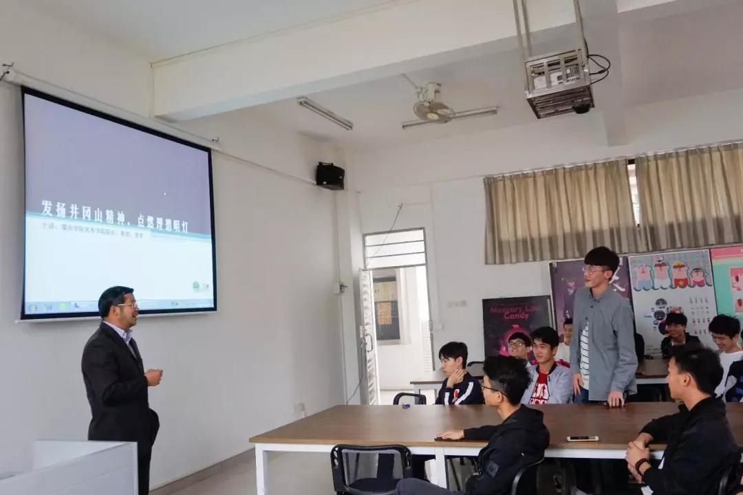 beats365官方网站梁善经理在美术楼408教室以“学习井冈山精神”为主题,为2017级环境设计专业新生上了一堂生动的党课。