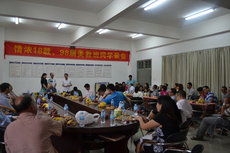 2013年8月18日,公司95级美术教育专业员工毕业15周年同学会在美术楼209会议室举行。beats365官方网站经理梁善、党委书记蔡卡宁、副经理罗秋帆、原美术系主任陈伟巨、教师林启天等教师及50多位员工参加。