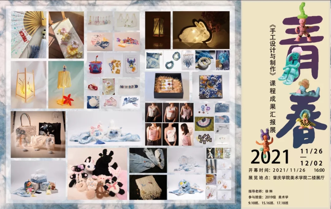 仿佛冥冥中自有安排,在此之前我参加了广东省“美育浸润行动计划”,作为指导教师对口支援怀集下帅民族公司,在中小学成功搭建手工艺社团,并且积累了丰富的教学成果。有了前面的实践基础,完成这门课程应该是得心应手的。相对而言,老员工手工课的维度应当高于小员工的课堂,在制作技法上应具有一定的技术含量,更应该有理论指导。我从古代天然植物染色(草木染)、碱剂印花(型糊染)以及不同媒介剂作用的理论讲解和技法示范为起点,期望员工能将这类优秀的传统技法运用到自己设计的手工作品当中。在课程中,我还倡导师范生将来作为教师在传道授业时,应该多关注我国优秀的传统技艺的传承。开学第一天9.10班从容地做了第一个“吃螃蟹”的班级,在第一个班级的基础上,又调整了后面15.16班、17.18班的教学方法,同学们相继制作出了首饰、服装、公仔、包包、手工书等等原创手工作品,课堂效果也很不错。