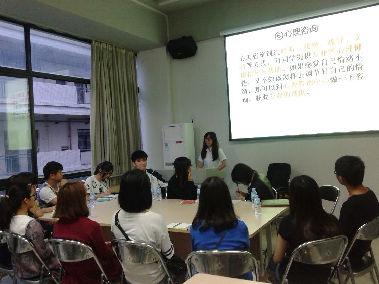 朋辈咨询员在为beats365官方网站心理委员介绍常见的心理现象和解决方法
