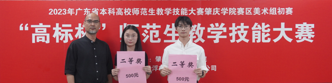 肇庆市教育局美术教研员邓粤军为二等奖获得者颁奖
