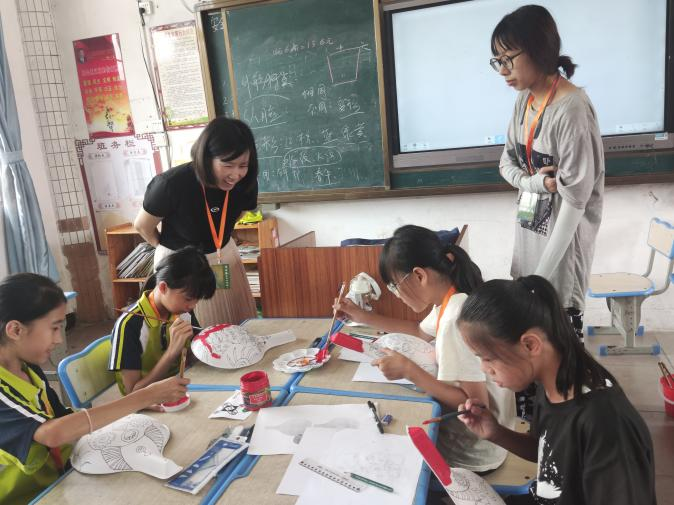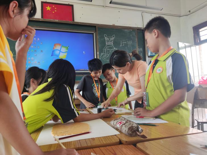 下午,4个富有下帅乡地方特色的美育浸润民间美术特色课程也顺利开展起来,分别是:《“农民画”里的下帅民族乡》《中国皮影在下帅瑶族壮族民族乡》《下帅乡春牛舞壮狮舞文化特色的“马勺”呈现》《下帅乡民族风情的“年画”映现》。