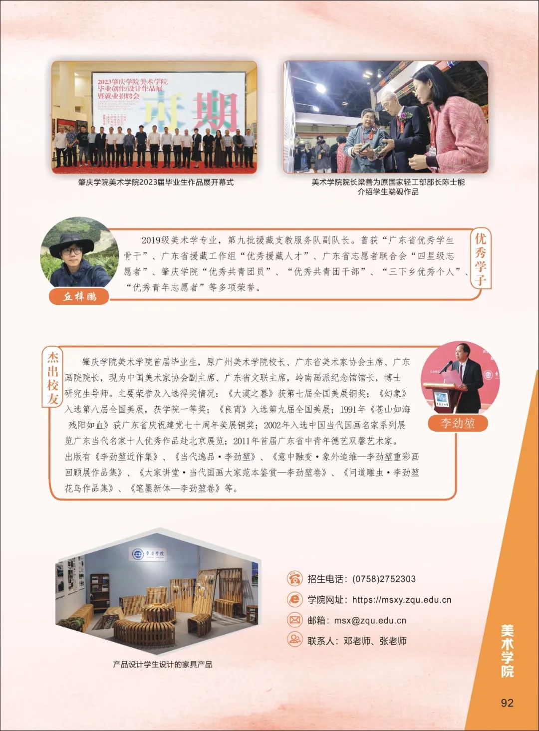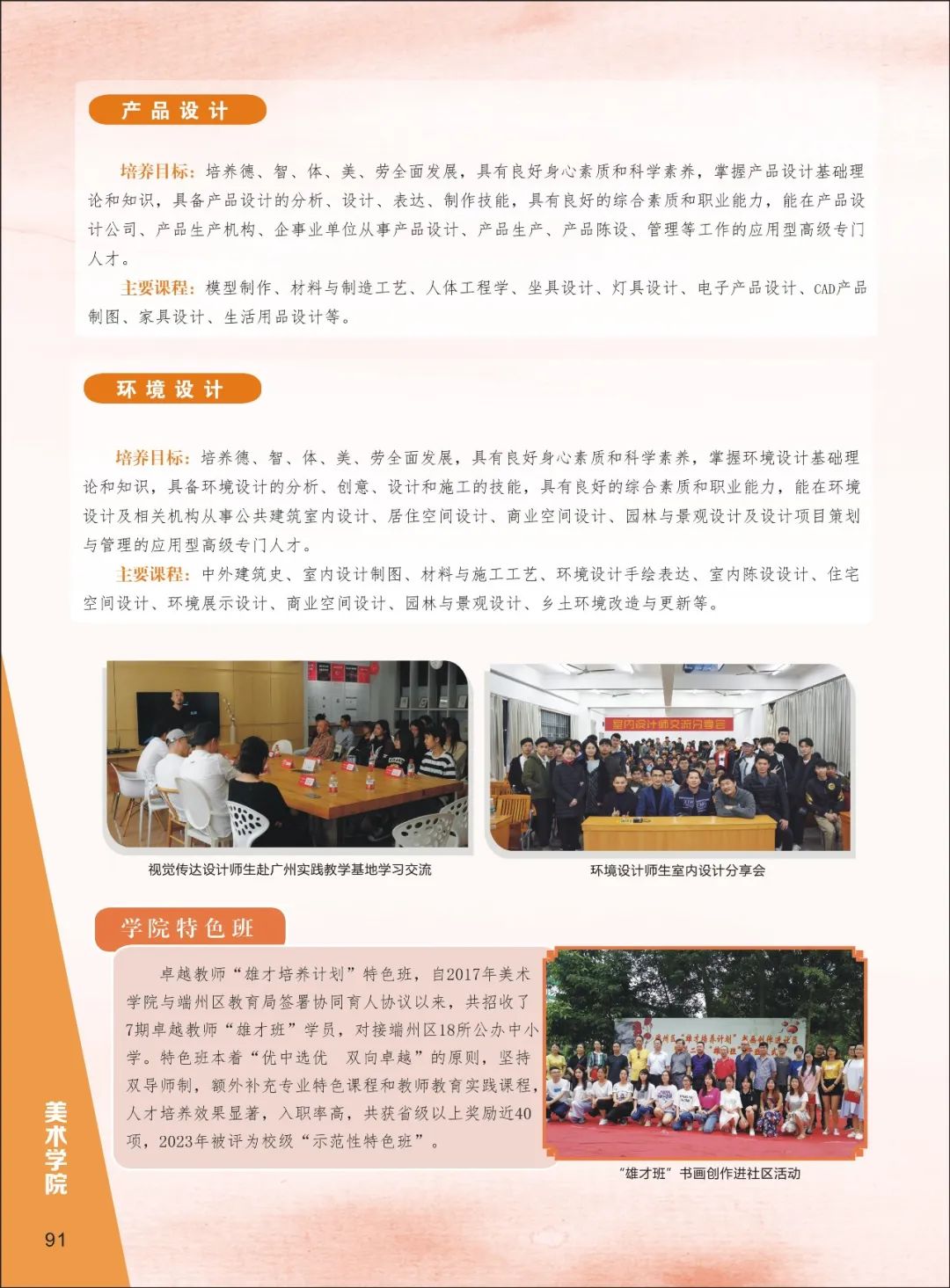 beats365官方网站以“立足肇庆,服务广东,面向世界,培养素质高、能力强,善创新的高水平美术与设计应用型人才”为办学定位,设有美术学、视觉传达设计、环境设计、产品设计、动画、工艺美术6个本科专业。艺术设计学是省重点学科,美术学科是校攀峰学科,视觉传达设计是省级一流本科专业、省级特色专业,工艺美术是省级特色专业,美术学是校级品牌专业,产品设计是校级一流专业。各专业面向全国多个省区招生,现有全日制在校本科生2281人。