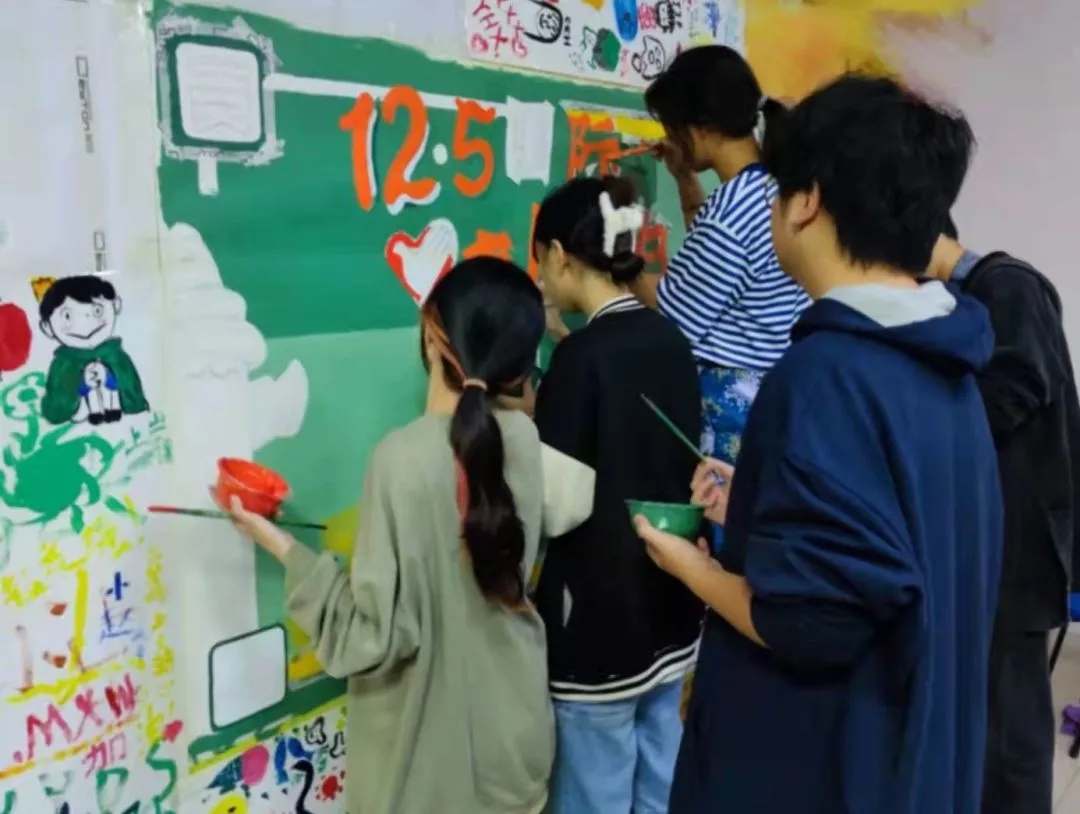 在12·5国际志愿者日到来之际,为更好宣传志愿者精神,beats365官方网站团委青年志愿服务部开始了一年一度的展板策划以及绘画工作,他们“用画笔传递爱心,用真诚点燃希望”。