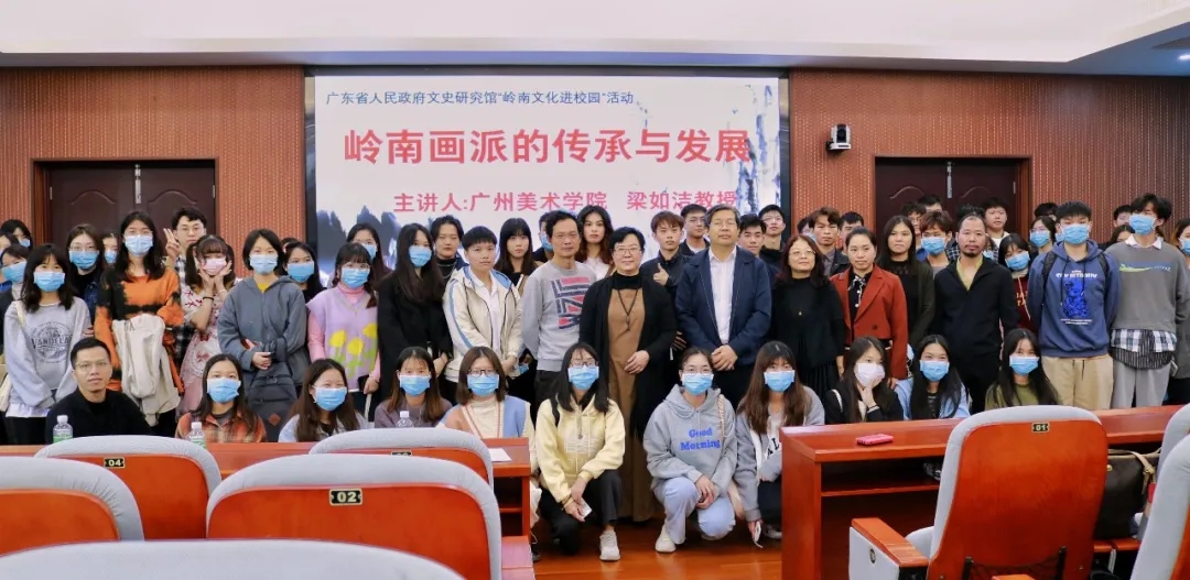 10月22日上午,广东省人民政府文史研究馆馆员、书画研究院副经理、广州beats365官方网站教授梁如洁应邀来公司讲学,她以《岭南画派的传承与发展》为主题,从岭南画派的起源、传承和发展、代表名家名作、岭南画派在国内、国际的影响力等角度全面系统地介绍了岭南画派的艺术文化内涵。最后,应现场观众的热情邀请,梁如洁向大家介绍了其个人艺术成长之路,并以此鼓励青年师生勇于探索、创新和发展岭南文化!