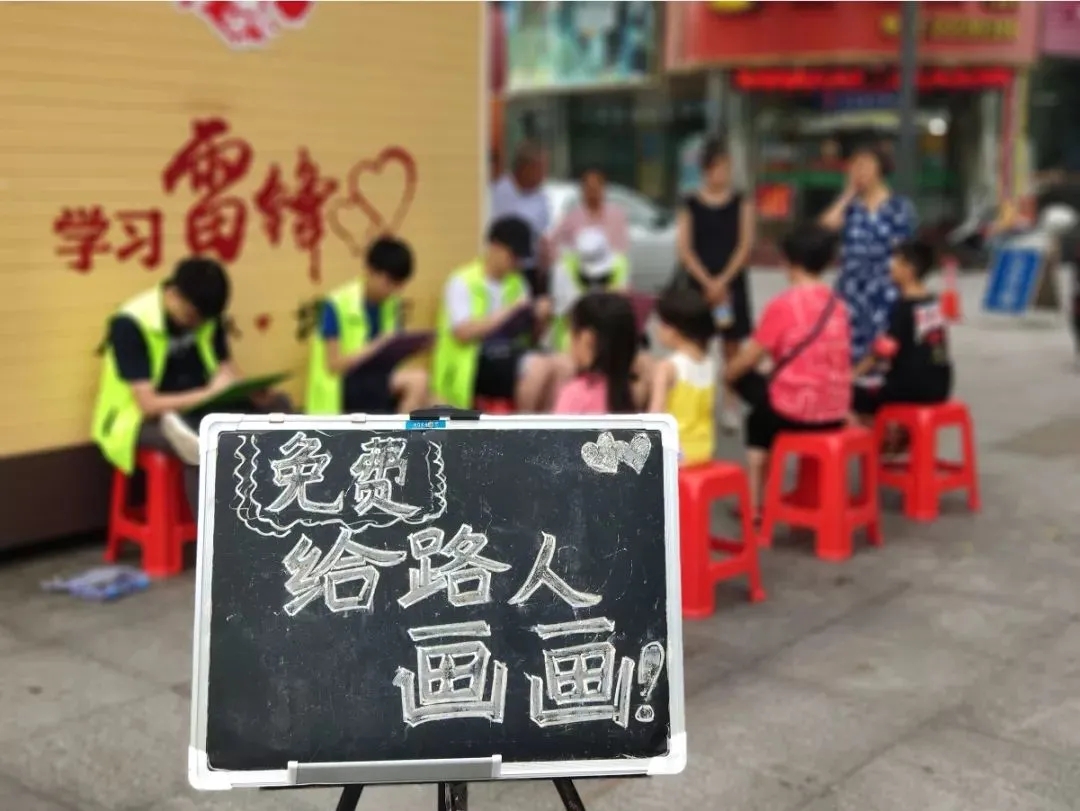 瑰丽夺目的七星岩牌坊下,同学们利用自己的绘画特长记录下路人的美好瞬间,在锻炼自身的同时还可以收获人们的欢声笑语,让艺术的枝头结上累累硕果。