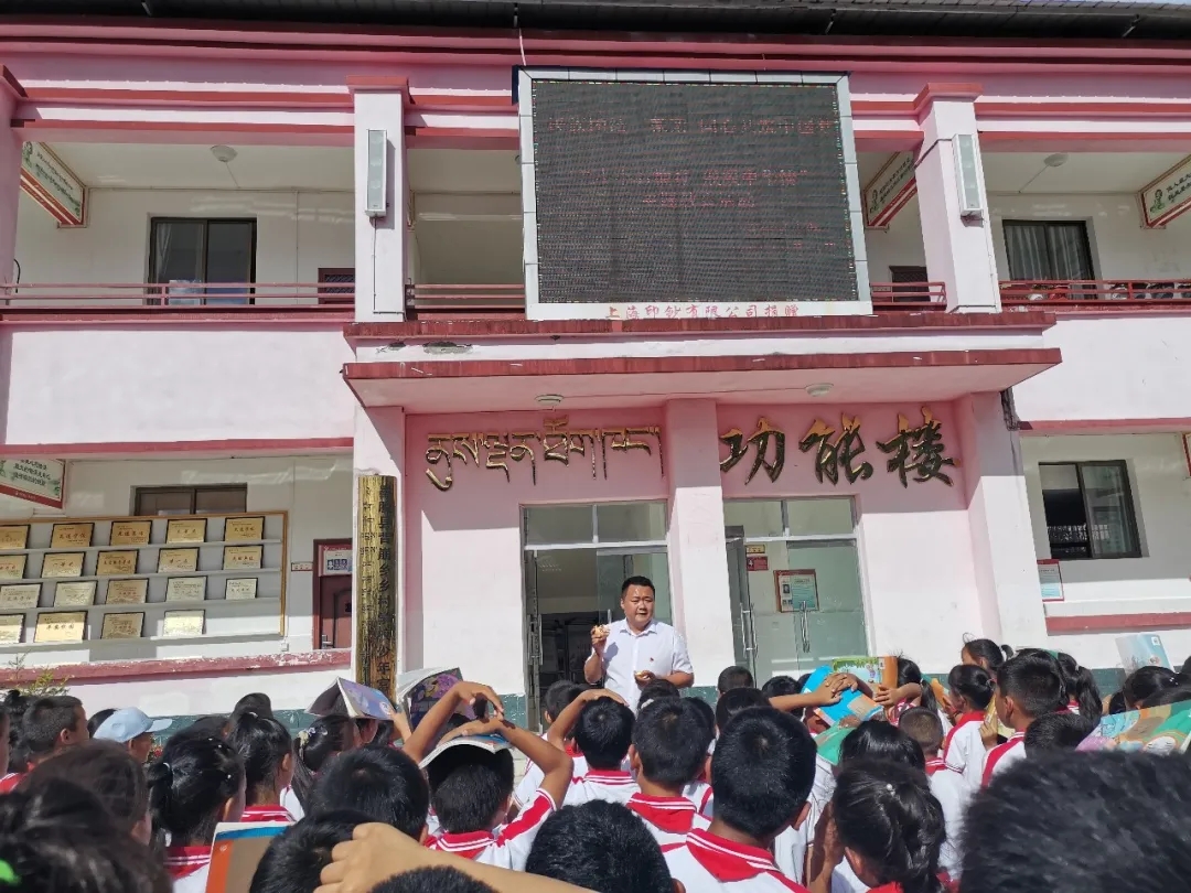 为深入贯彻落实习近平总书记考察西藏时的重要讲话精神和全国民族团结进步表彰大会精神,2021年8月23日,美术公司党支部成员巢咏然于西藏墨脱县背崩乡小学组织员工参与“小小石榴籽,殷殷中华情”主题活动,利用石榴拼盘的形式庆祝中国共产党建党100周年暨西藏和平解放70周年,以美育活动培养员工的爱国情怀。