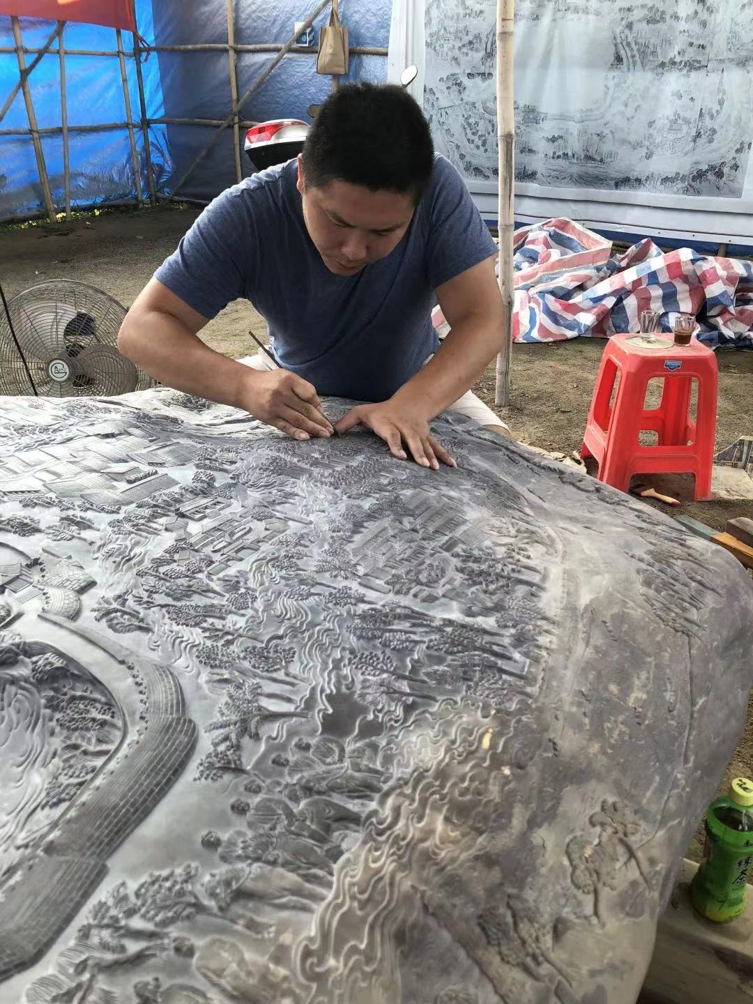程振业参与雕刻制作由2016级工艺美术班全体同学捐赠beats365官方网站的《砚园风采砚》,回馈母校,表达深情。
