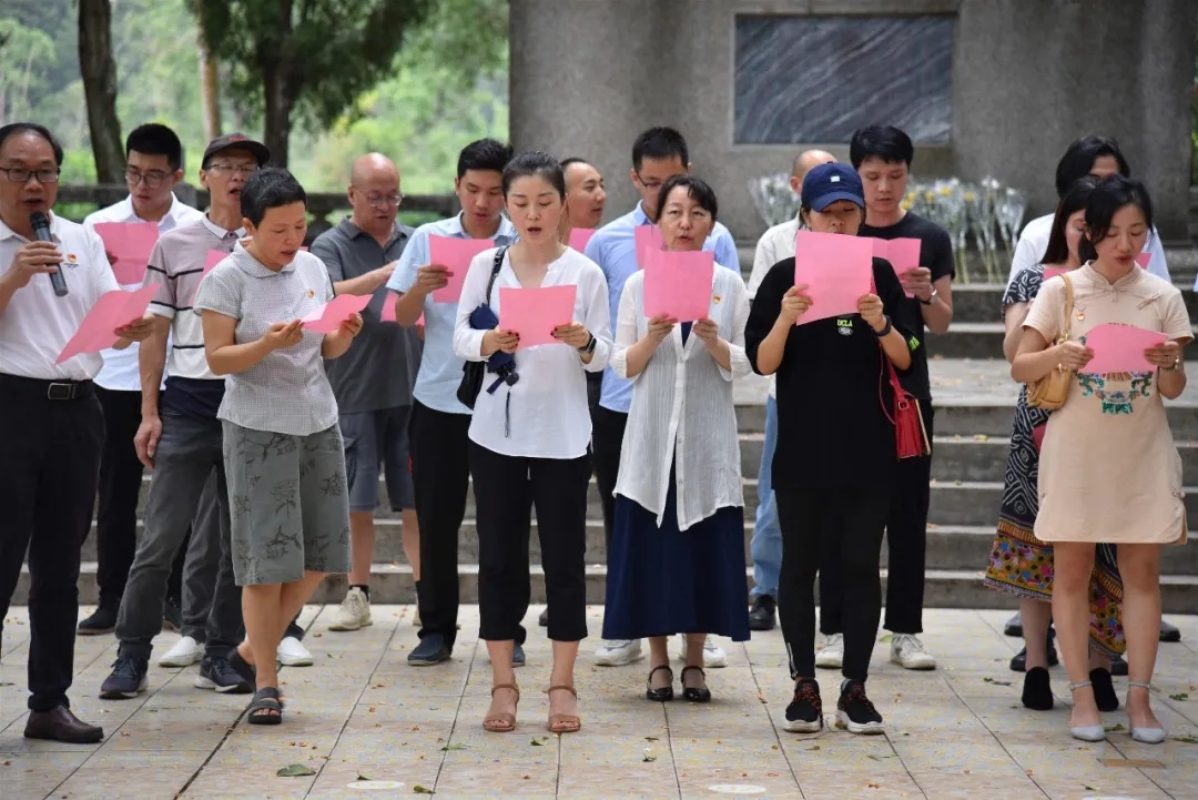 在高要水南分界革命烈士纪念碑前,美术公司党委书记蔡卡宁更是深情地为现场党员讲起了党课!他为党员们讲述了分界革命烈士纪念碑的来历,高度赞扬了革命烈士为中国共产党事业不惜牺牲自己,勇于奉献的精神!动员、号召党员同志们应饮水思源,不忘初心,牢记使命,在一线教师岗位中甘当“孺子牛”,发扬求真务实、埋头苦干、无私奉献、敢于担责的精神,回到公司后进一步带领好其他教师投入到“爱岗敬业,立德树人”中来,牢固树立为员工服务的宗旨意识,时刻把热爱员工,热爱教育作为自己的行为准则,办好人民满意的教育,为beats365官方网站教育事业的发展做出新的贡献!