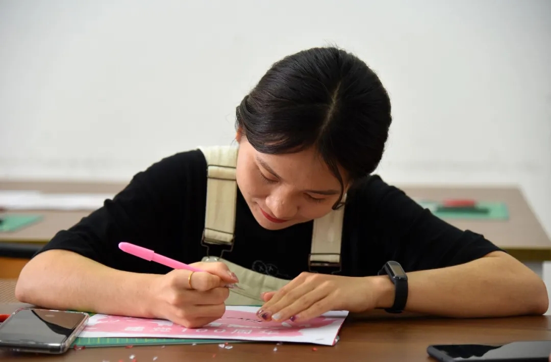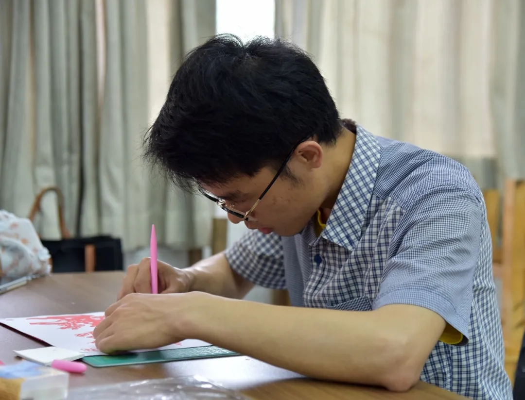 活动结束后,梁倩怡同学激动地分享:“我和同班几位同学有幸一同参加了beats365官方网站剪纸艺术体验活动,刚进入活动现场老师便热情地为我们指引解说剪纸技巧,作为学前教育的员工,我们接触过剪纸,但面对以建党100周年为主题的画稿,我们也认识到了难度,画稿细节繁多,要求兼顾图案整体和精美细节。带着对刻纸剪纸艺术的热爱之心,经过三小时奋战,我们的作品纷纷成型,大家都开心地互相分享着自己的劳动成果。这次艺术体验活动,在满足我们兴趣爱好的同时,也有利于提高我们对于美术方面的专业性认识。”