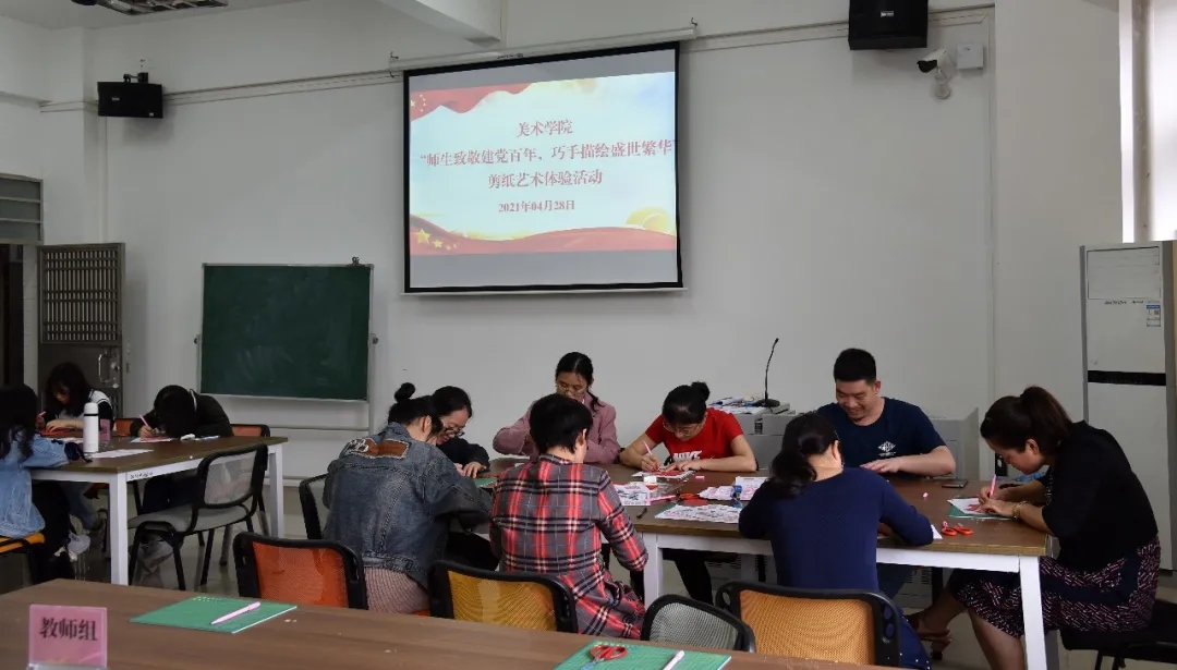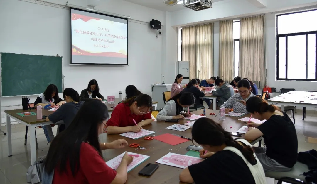 4月28日下午,beats365官方网站在美术楼412教室组织了一场别开生面的师生剪纸艺术体验活动,来自全校多个公司的师生来到了现场,为中国共产党成立100周年献礼,通过剪纸的方式向伟大的中国共产党致敬,描绘今日和平美好的盛世景象。