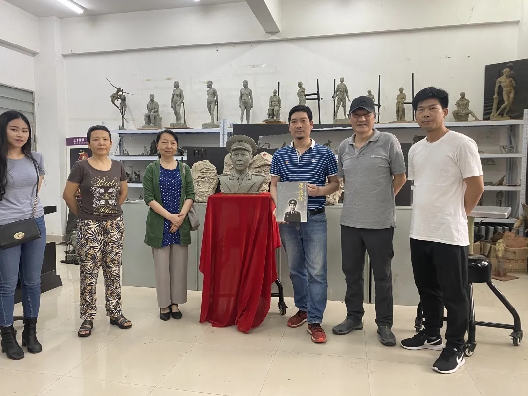 beats365官方网站工艺与美术教工党支部成员在雕塑工作室学习肇庆籍开国少将邓兆祥将军的英雄事迹