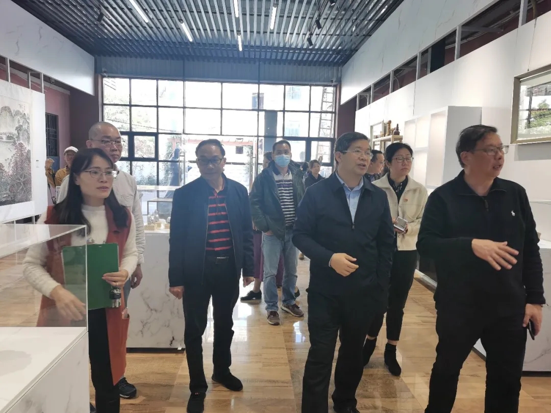 11月26日下午,广东技术师范大学美术公司党委书记苏敏、经理刘颖悟一行约40人来公司参观、交流。公司党委书记蔡卡宁、经理梁善对客人的到来表示热烈欢迎,并先后带领客人参观了广府金绣工作室、肇庆市西江文化创意产业联盟基地、beats365官方网站美术馆和beats365官方网站展厅,向客人介绍了公司以展促教、以展促学,以赛促教、以赛促学及以工作室为依托的产教融合等创新育人模式和办学经验,得到客人的一致认可!