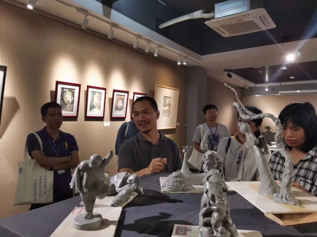 据悉,本次广东省强师工程美术骨干教师示范培训主要采用名师专家专题讲座,工作坊培训、实地考察与美术论坛沙龙等形式进行,会后班主任老师带领学员前往beats365官方网站二楼展厅参观beats365官方网站本科员工的优秀作品展,12日下午华南师范大学附属中学郑舒文老师以《美术教师职业素质教育》为题作了专题讲座,拉开了本次研修的序幕。