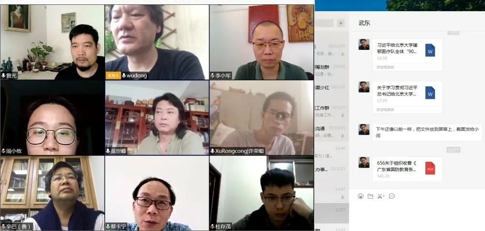 2020年3月25日,公司工艺与美术教师党支部开展党员组织生活主题日活动。本次会议创新组织生活形式,利用腾讯会议进行网上视频会议,应到17人;实到16人(1人有教学任务请假),主持人:武东书记,记录:曾光。