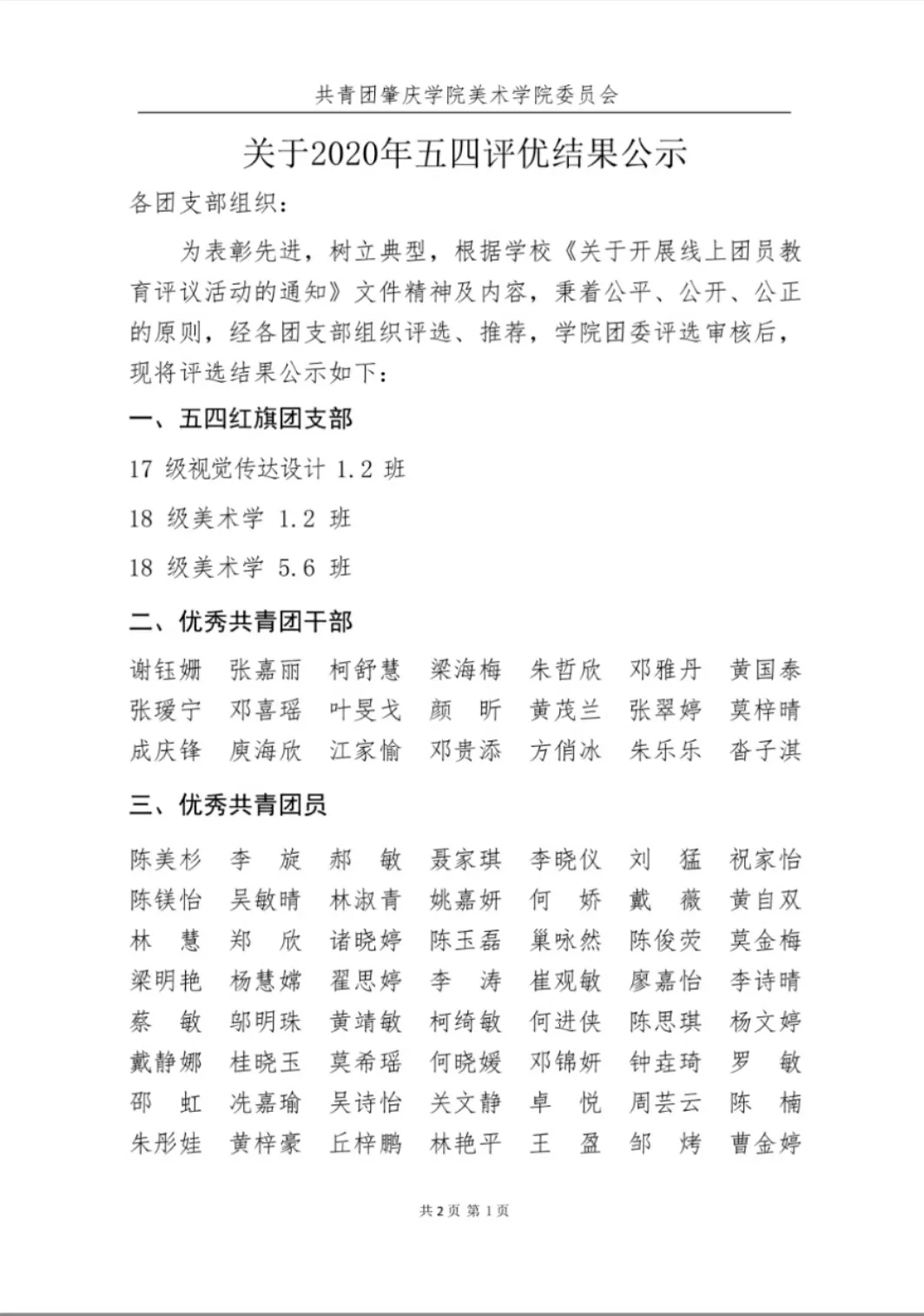 公示 | 2019-2020年度五四红旗团支部与优秀共青团干部、优秀共青团员名单