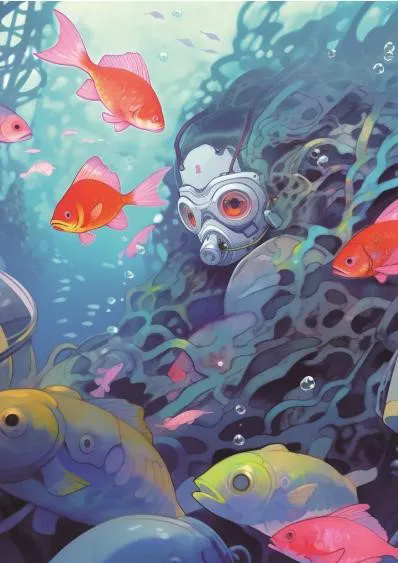 插画融汇了自然生机与未来科技的元素,传达“海洋呼吸,地球生机”的主题。图中展现在深蓝色的海洋中人类与生动的海洋生物共存的美好景象,表达人类对海洋的探索和依赖,也是对环境保护和生态平衡的致敬。插画采用写实的漫画风格,细腻的笔触和鲜艳的色彩运用使整个画面充满生命力和未来感,数字绘画的技术手法使得光影与颜色更加饱满,增强了视觉冲击力。作品传递深刻的环保理念和对未来的美好期许,通过艺术的形式,提醒我们珍惜和守护我们唯一的家园——地球。
