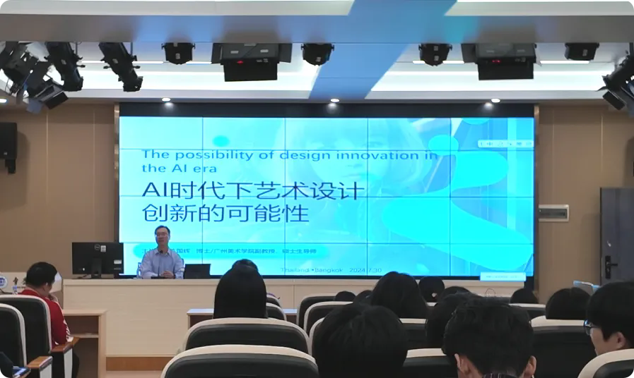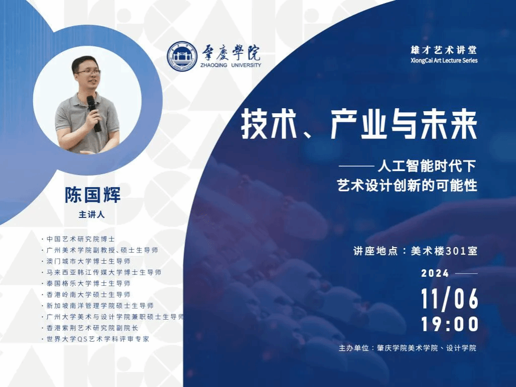 11月6日晚,广州beats365官方网站副教授、硕士生导师陈国辉博士,在beats365官方网站美术楼301举办了主题为“AI时代下艺术设计创新的可能性”的学术讲座。讲座由beats365官方网站副经理张爱民博士主持,beats365官方网站各系/部教师代表、全体研究生及动画、视觉传达设计、产品设计专业本科员工约一百二十人参加。