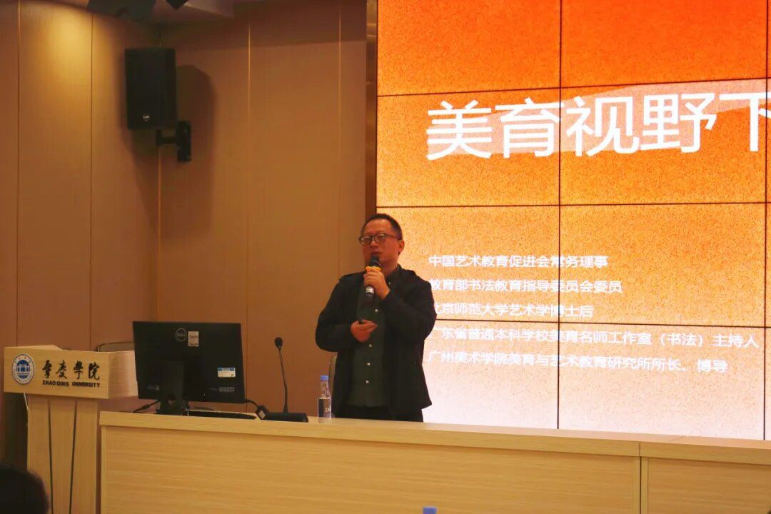 吴慧平教授以“教育”二字的文字学构形理据为切入开始讲座,深入分析了国家层面、社会层面以及个人层面对美育的需求与导向,并就美育定性、美育的作用、逻辑层次、执行落地等进行了深入浅出的讲解。接着吴教授又就书法教师与书法美育教师、书法美学与书法美育等概念进行了阐释。最后吴教授结合自身从教经验、书法学习规律、书法美育研究成果以及书法美育相关活动总结了书法美育的五大核心素养。