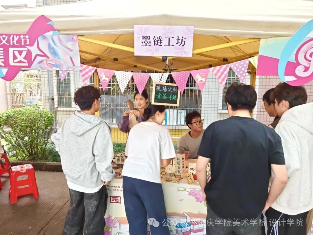 现场人头攒动的热闹景象,正是对同学们创意与努力的最好肯定。员工们带着家人前来支持,同学们呼朋引伴打卡逛展,砚园市集的辐射力不断延伸。大家在摊位前驻足交流,为创意点赞,为青春喝彩,原本分散的个体因这场市集紧密相连,“社区”的温度在互动中不断升温。