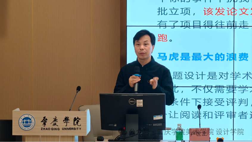 在文献阅读与写作环节,卢教授结合设计学科的特性,从“如何筛选高质量文献”“如何提炼研究问题”“如何构建写作逻辑”三个维度展开细致讲解。他强调,文献阅读并非简单的信息堆砌,而是要在梳理学科脉络的基础上找到研究空白;学术写作则需兼顾逻辑严谨性与设计学科的创新性,让研究观点既有理论支撑,又有设计实践的落地性。同时,卢教授还结合自身学术研究经验,分享了设计类研究从选题构思到成果输出的全流程技巧,为师生们规避学术研究中的常见误区提供了实用建议。