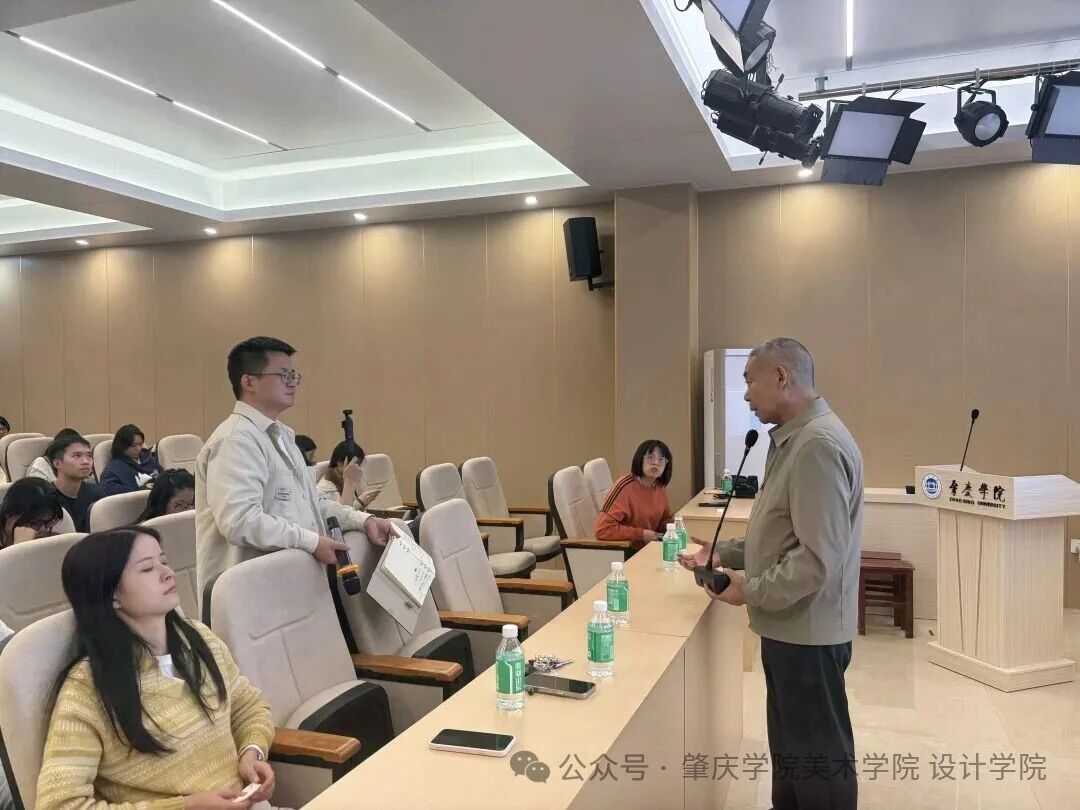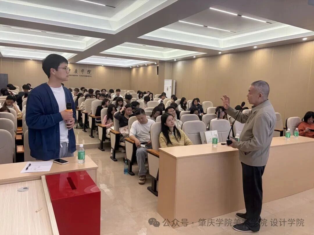 互动环节更是氛围热烈,掌声与提问声此起彼伏。现场师生纷纷结合自身专业学习与创作实践,抛出了一个个有深度、有针对性的问题:“声学家具在材料选型上如何平衡吸声效果与环保性?”“中小设计企业在声学家具赛道如何找到差异化竞争力?”“员工在进行声学家具设计时,应优先掌握哪些核心知识与技能?” 面对师生们的疑问,罗钦平教授耐心细致地逐一解答,从技术细节到市场逻辑,从设计思路到落地难点,毫无保留地分享了自己的经验与见解。讲座结束后,不少师生仍围在罗教授身边,继续深入探讨设计中的困惑与创新方向,笔尖沙沙记录的声音与热烈的交流声,成为现场最动人的风景。