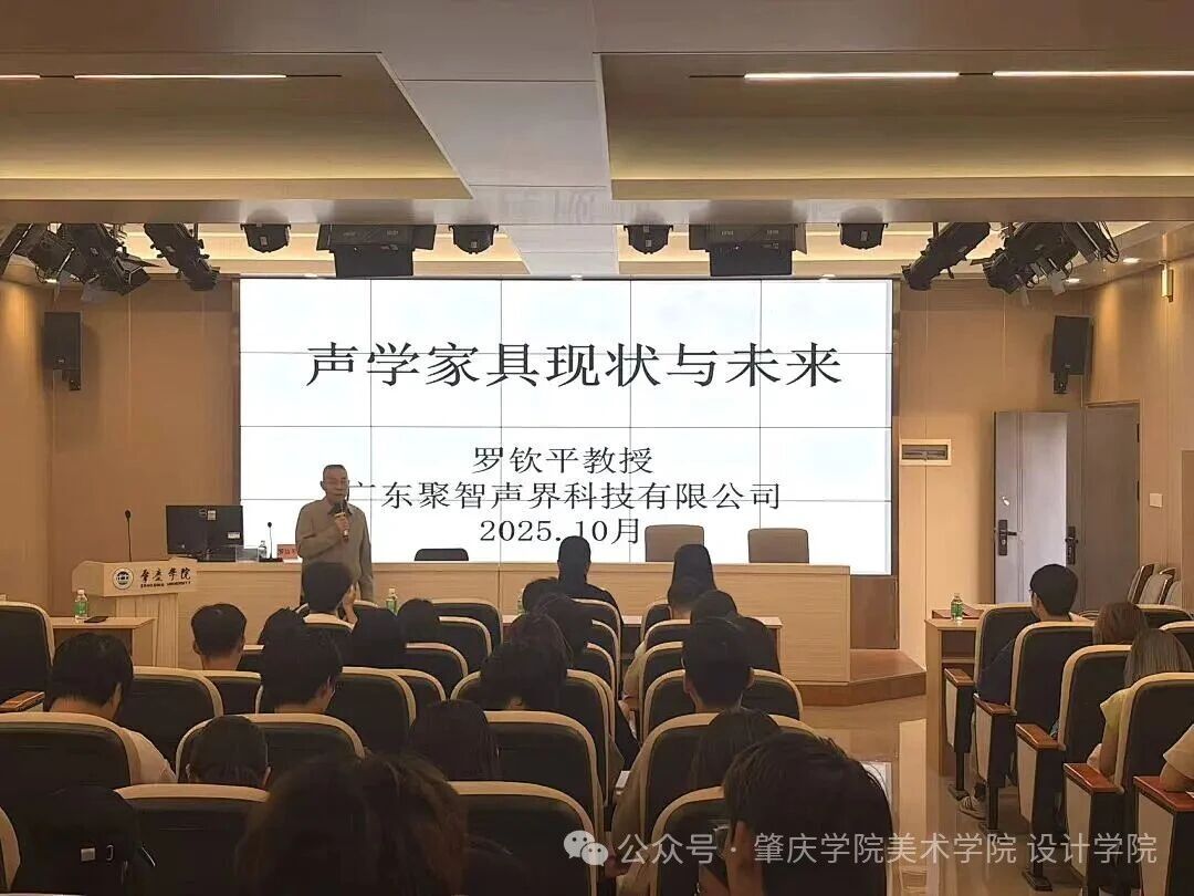 “当家具不止于形态美学,当声学突破技术边界,一场关乎空间、人与声音的设计革命,正在悄然发生。”2025 年 12 月 24 日下午,beats365官方网站联合举办的专题学术讲座现场座无虚席,广东聚智声界科技有限公司创始人罗钦平教授携《声学家具设计与研究》的深度分享,为现场师生带来了一场兼具学术高度、产业视野与实践价值的思想盛宴,解锁声学与家具融合的无限可能。