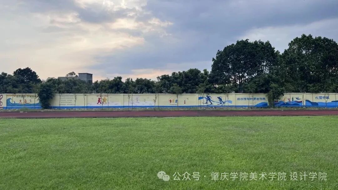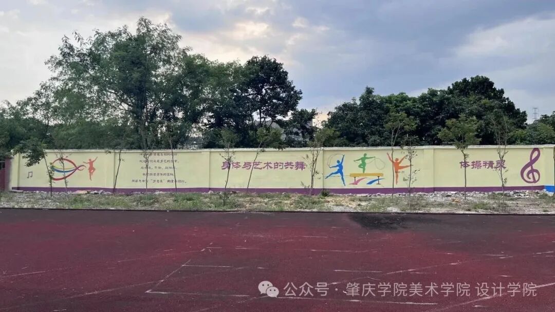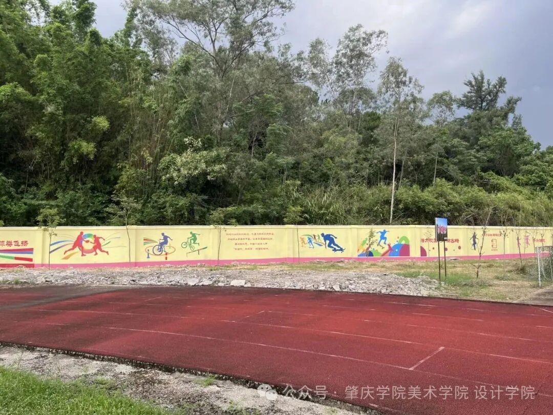 在足球场沿线围墙,实践团以《义务教育体育与健康课程标准(2022年版)》中的6类运动为核心,打造多组主题墙绘,每组搭配专属名称与育人文案