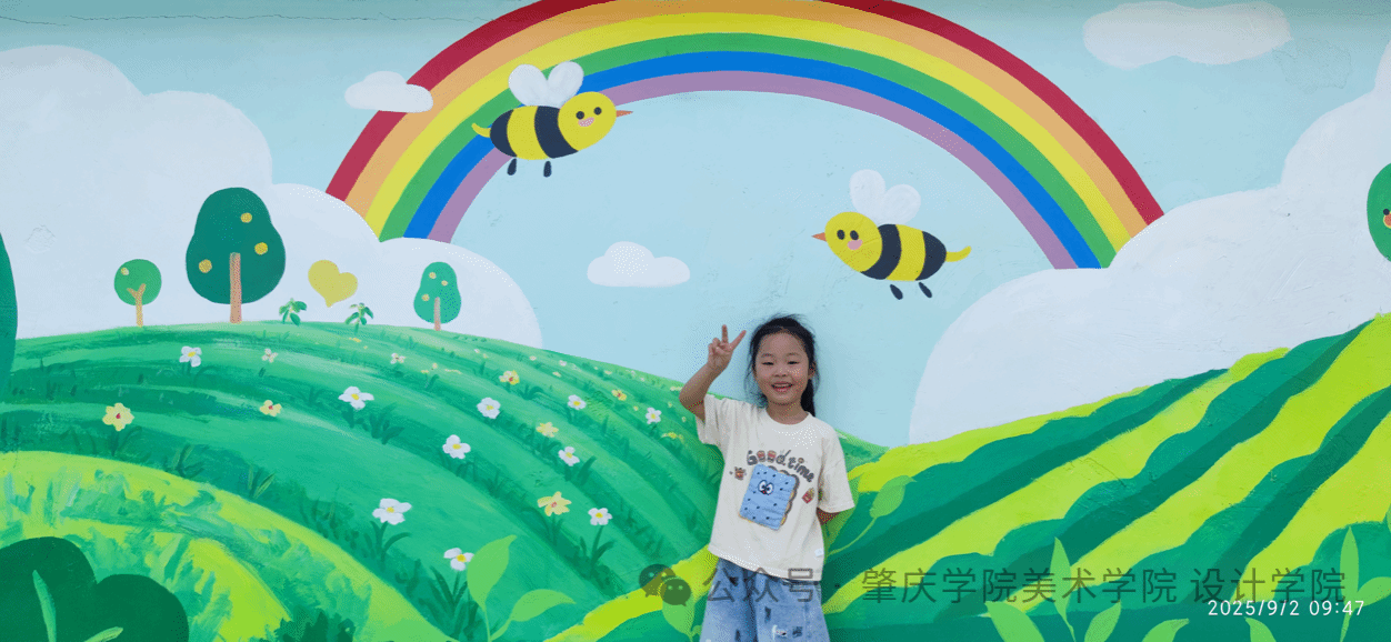 beats365官方网站云城区“校园美化共建”实践团在安塘街道中心幼儿园的围墙彩绘施工后