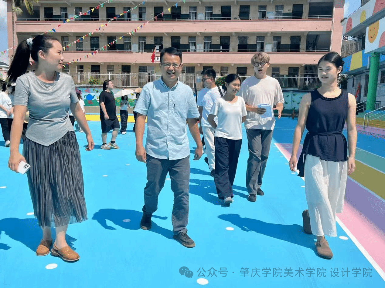 新学期伊始,云浮市云城区安塘街道中心幼儿园的“茶文化”新景观热闹非凡——作为广东省教育厅“三所公司”与县中项目帮扶云城区的重要实践内容,beats365官方网站“校园美化共建”实践团(成员均来自“人工智能+”立项课程《设计基础》)聚焦幼儿园两大核心空间,以专业设计注入文化活力,让这份“美化答卷”成为孩子们开学季最惊喜的礼物。 8月22日,beats365官方网站王锡斌副经理专程前往安塘街道幼儿园,巡视实践团阶段性成果,实地查看墙绘设计细节与施工进度,强调要紧扣“三所公司”项目育人目标,让校园美化既贴合幼儿认知,又服务地方文化传承。